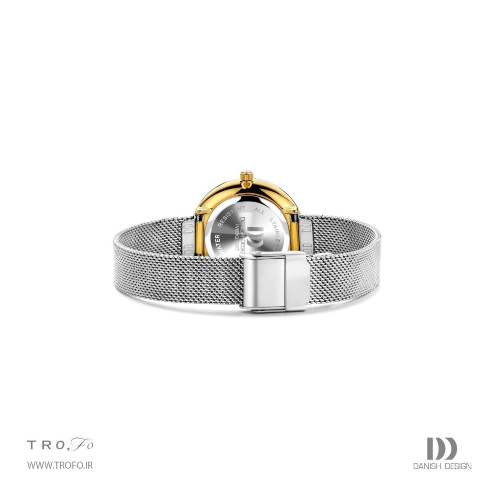 این مدل ساعت مچی عقربه ای زنانه از کالکشن Pure و سری Amelia Ripple با عنوان Amelia Ripple Two-Tone شناخته میشود , این ساعت برای خانم ها مناسب است, ساعت تک موتوره ، صفحهی ساعت گرد است, رنگ صفحه این ساعت نقره ای میباشد, نشانگرهای ساعت طلایی و عقربهها به رنگ طلایی هستند, برند دنیش دیزاین بالا وسط صفحه ساعت درج شده است، قفل بند این ساعت مچی زنانه از نوع فشاری است و بند ساعت مچی دنیش دیزاین استیل مش است و تاج ساعت به رنگ طلایی است, بدنه طلایی ساعت استیل است که روی تاج علامت برند دنیش دیزاین حک شده است, این ساعت تا فشار ۳ATM (۳۰ متر) در برابر آب مقاوم است,ابعاد صفحه این ساعت مچی عقربهای ۳۰ میلیمتر و ضخامت صفحه ۵ میلیمتر است, عرض این ساعت ۱۲ میلیمتر است, این ساعت زنانه دارای موتور کوارتز از برند میوتای ژاپن Miyota بوده و منبع تامین انرژی آن باتری است, شیشه ساعت از نوع کریستال معدنی است.