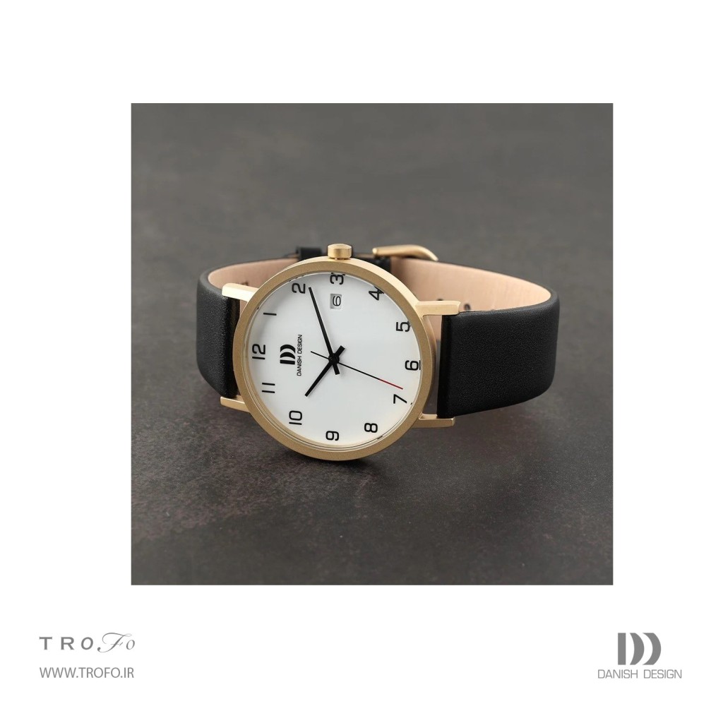این مدل ساعت مچی عقربه ای زنانه از کالکشن Gløbe و سری Rhine با عنوان Rhine NMBRS Satin Gold Date Small شناخته میشود , این ساعت برای آقایون مناسب است, ساعت تک موتوره، با قابلیت نمایش تاریخ ، صفحهی ساعت گرد است, رنگ صفحه این ساعت سفید میباشد, نشانگرهای ساعت و عقربهها به رنگ مشکی هستند, برند دنیش دیزاین بالا وسط صفحه ساعت درج شده است، قفل بند این ساعت مچی مردانه از نوع سگکی است به همراه بند چرم مشکی تاج ساعت به رنگ طلایی است, بدنه طلایی مات بسیار سبک از جنس تیتانیوم که روی تاج علامت برند دنیش دیزاین حک شده است, این ساعت تا فشار 3ATM (30 متر) در برابر آب مقاوم است, قطر صفحه این ساعت مچی عقربهای ۳۹ میلیمتر و ضخامت صفحه ۶.۹ میلیمتر است, عرض این ساعت ۲۰ میلیمتر است, این ساعت مردانه دارای موتور کوارتز از برند میوتای ژاپن (Seiko) مدل VJ52 بوده و منبع تامین انرژی آن باتری است, شیشه ساعت از نوع معدنی است.