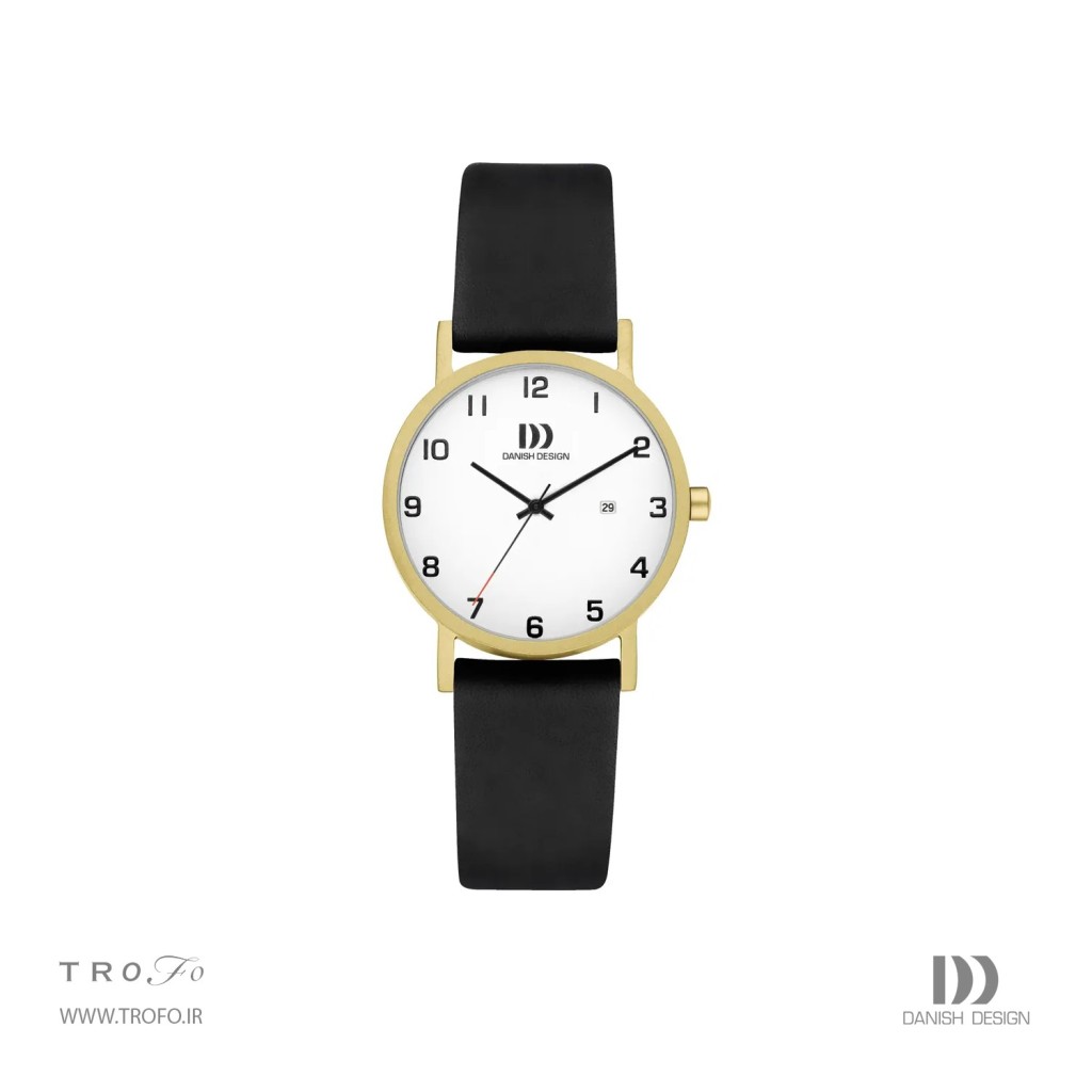 این مدل ساعت مچی عقربه ای زنانه از کالکشن Gløbe و سری Rhine با عنوان Rhine NMBRS Satin Gold Date Small شناخته میشود , این ساعت برای خانم ها مناسب است, ساعت تک موتوره، با قابلیت نمایش تاریخ ، صفحهی ساعت گرد است, رنگ صفحه این ساعت سفید میباشد, نشانگرهای ساعت و عقربهها به رنگ مشکی هستند, برند دنیش دیزاین بالا وسط صفحه ساعت درج شده است، قفل بند این ساعت مچی زنانه از نوع سگکی است به همراه بند چرم مشکی تاج ساعت به رنگ طلایی است, بدنه طلایی مات بسیار سبک از جنس تیتانیوم که روی تاج علامت برند دنیش دیزاین حک شده است, این ساعت تا فشار 3ATM (30 متر) در برابر آب مقاوم است, قطر صفحه این ساعت مچی عقربهای ۳۰ میلیمتر و ضخامت صفحه ۶.۹ میلیمتر است, عرض این ساعت ۱۶ میلیمتر است, این ساعت مردانه دارای موتور کوارتز از برند میوتای ژاپن (Seiko) مدل VX82 بوده و منبع تامین انرژی آن باتری است, شیشه ساعت از نوع معدنی است.