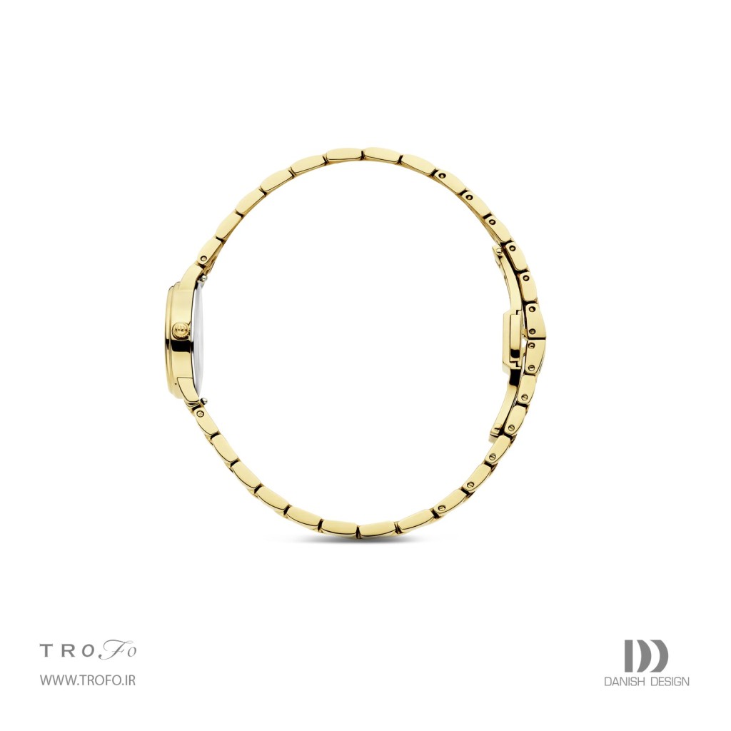 این مدل ساعت مچی عقربه ای زنانه از کالکشن Tidløs و سری Eloise با عنوان Eloise all Gold شناخته میشود , این ساعت برای خانم ها مناسب است, ساعت تک موتوره ، صفحهی ساعت بیضی است, رنگ صفحه این ساعت طلایی میباشد, نشانگرهای ساعت طلایی و عقربهها به رنگ طلایی هستند, برند دنیش دیزاین بالا وسط صفحه ساعت درج شده است، قفل بند این ساعت مچی زنانه از نوع پروانه ای است و بند ساعت مچی دنیش دیزاین استیل است و تاج ساعت به رنگ طلایی است, بدنه طلایی ساعت استیل است که روی تاج علامت برند دنیش دیزاین حک شده است, این ساعت تا فشار ۳ATM (۳۰ متر) در برابر آب مقاوم است,ابعاد صفحه این ساعت مچی عقربهای ۱۹*۲۳ میلیمتر و ضخامت صفحه ۵ میلیمتر است, عرض این ساعت ۱۰ میلیمتر است, این ساعت زنانه دارای موتور کوارتز از برند میوتای ژاپن Miyota بوده و منبع تامین انرژی آن باتری است, شیشه ساعت از نوع کریستال معدنی است.