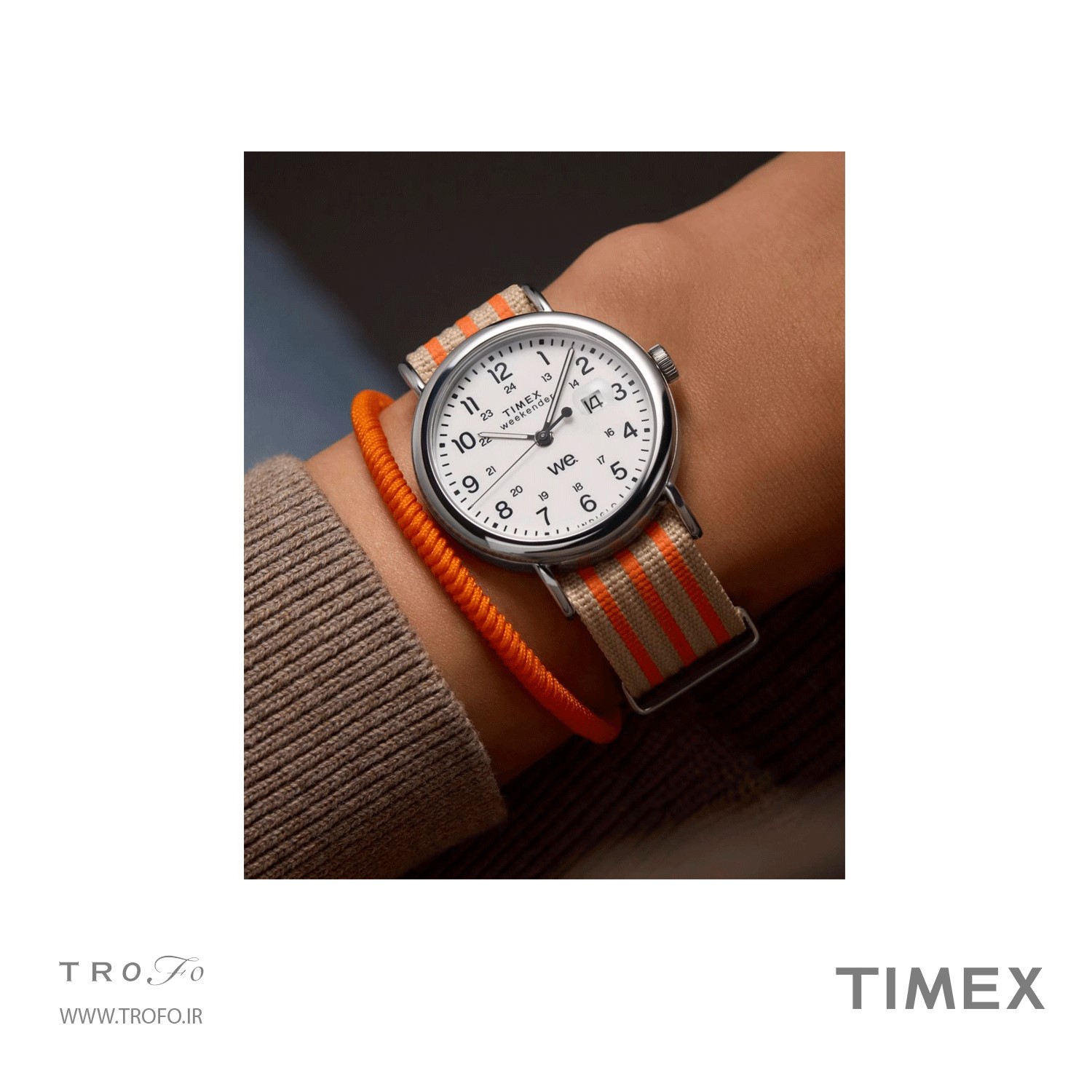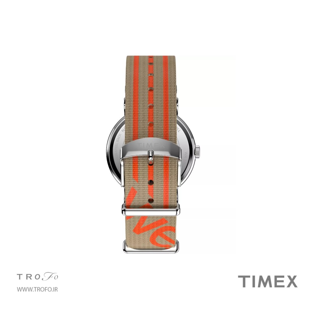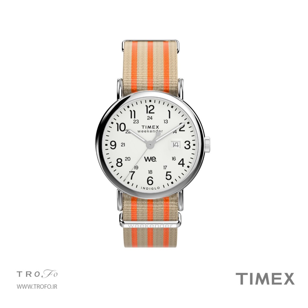 این مدل ساعت مچی عقربه ای مردانه با عنوان TW2Y08900 شناخته میشود, لوگوی نمادین "we." روی صفحه ساعت، یادآوری میکند که حتی یک روز معمولی هم میتواند با حضور عزیزانمان، به روزی فراموشنشدنی تبدیل شود. روی صفحه سفید و شفاف آن، علاوه بر نمایش تاریخ با ذرهبین برای دید بهتر، شاخصهای زمانی ۱۲ ساعته و ۲۴ ساعته نیز دیده میشود.این ساعت برای آقایون و خانم ها مناسب است, برند تایمکس بالا وسط صفحه ساعت درج شده است، بند ساعت دارای بند پارچه ای دو رنگ با قفل سگکی است , تاج ساعت به رنگ نقرهای است, روی تاج علامت برند تایمکس حک شده است, این ساعت تا فشار ۵ ATM (۵۰متر) در برابر آب مقاوم است, قطر صفحه این ساعت مچی عقربهای ۴۰ میلیمتر و ضخامت صفحه ۱۰ میلیمتر است, عرض بند استیل این ساعت 20 میلیمتر است, این ساعت مچی دارای موتور کوارتز از برند آمریکایی اپسون (epson) و منبع تامین انرژی آن باتری است, شیشه ساعت از نوع شیشه آکرالیک است و بند ساعت مناسب مچ های ۱۵۰ تا ۲۰۵ میلیمتری می باشد