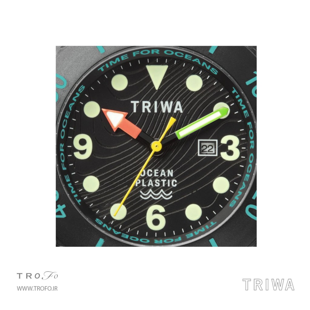 هر ساله ۸ میلیون تن پلاستیک، معادل بار کامیون کمپرسی در هر دقیقه، وارد اقیانوسهای ما میشود و به ۱۵۰ میلیون تن پلاستیکی که در حال حاضر در اقیانوس ها در گردش هستند میپیوندد. آلودگی پلاستیکی تأثیر عمیق و غیرقابل برگشتی بر زندگی دریایی و سیاره ما دارد. ما به همراه Tide Ocean Material این مجموعه از ساعت ها را به عنوان راه حلی برای مشکل و نمادی از تغییر توسعه داده ایم. قاب و بند از پلاستیک ۱۰۰٪ بازیافتی اقیانوسی تولید شده است که توسط شرکت Tide Ocean Material® سوئیسی ساخته شده اند. زبالههای اقیانوس با کمک انرژی خورشیدی به دانههای درجه یک تبدیل میشوند و سپس به ساعتهای Time for Oceans برند triwaتبدیل میشوند. به ازای هر ساعت فروخته شده،به تمیز شدن اقیانوس ها کمک می کنید.