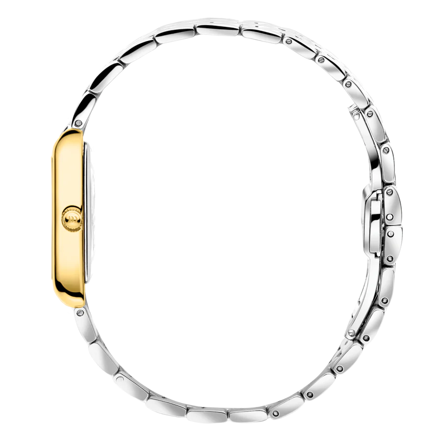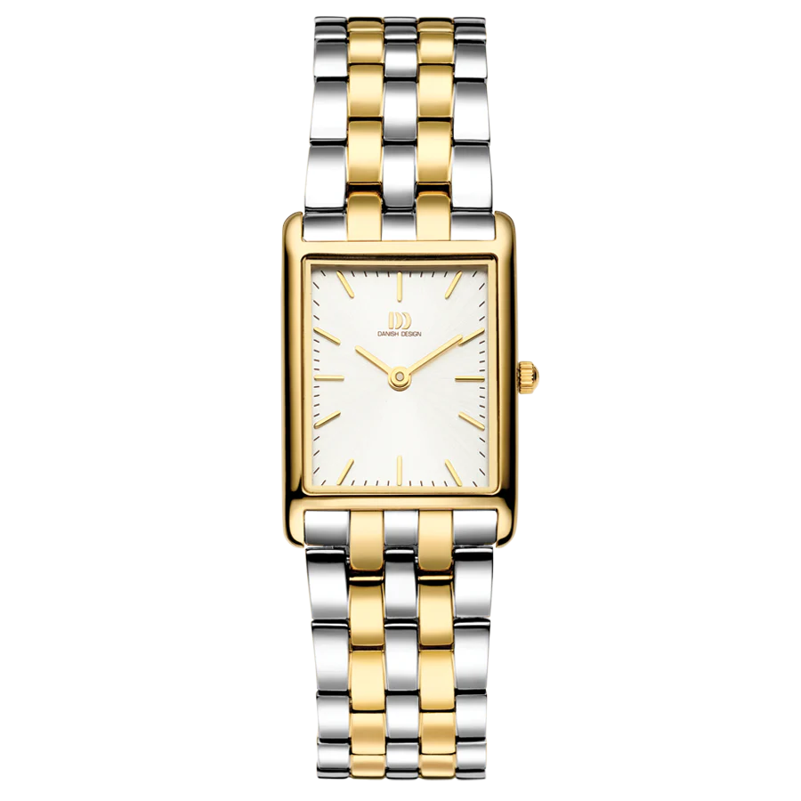 این مدل ساعت مچی عقربه ای زنانه از کالکشن Pure و سری Marie با عنوان Marie Two -Tone شناخته میشود , این ساعت برای خانم ها مناسب است, ساعت تک موتوره، صفحهی ساعت مستطیل با ابعاد جمعوجور ۲۲ در ۲۵ میلیمتر، برای بانوانی طراحی شده که به لوکسی ظریف و مینیمالیستی علاقهمندند. است, مدل "Marie Two -Tone" با قابی به رنگ طلایی و بند فلزی دو رنگ طلایی و نقره ای لوکس، ظاهری درخشان و مجلل ایجاد میکند. قفل پروانهای کاربردی ، باعث میشود این ساعت بهآسانی روی مچ قرار بگیرد و همانند یک قطعه جواهر بدرخشد. با Marie Two-tone روی دستش، همیشه آمادهی ماجراجویی است؛ چه یک سفر ناگهانی با مترو باشد یا روزی آرام در سواحل نورماندی. تاج ساعت به رنگ طلایی است, روی تاج علامت برند دنیش دیزاین حک شده است, این ساعت تا فشار 3ATM (30 متر) در برابر آب مقاوم است, ضخامت صفحه ۵.۲ میلیمتر است, عرض بند استیل این ساعت ۱۸ میلیمتر و طول آن ۹۰ میلیمتر است. این ساعت زنانه دارای موتور کوارتز از برند میوتای ژاپن بوده و منبع تامین انرژی آن باتری است, شیشه ساعت از نوع معدنی است.