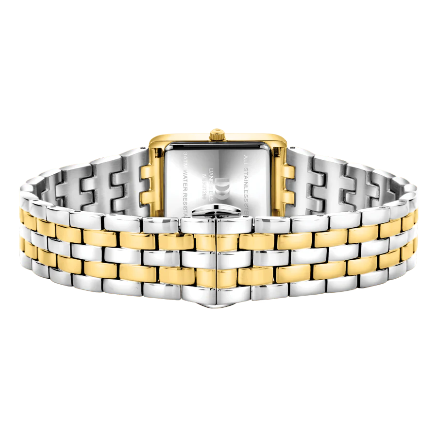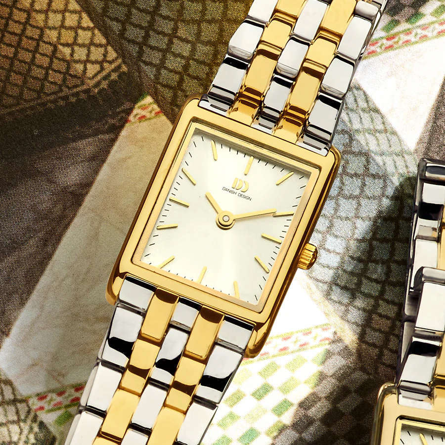 این مدل ساعت مچی عقربه ای زنانه از کالکشن Pure و سری Marie با عنوان Marie Petite two-tone شناخته میشود , این ساعت برای خانم ها مناسب است, ساعت تک موتوره، صفحهی ساعت مستطیل با ابعاد جمعوجور ۱۹.۵ در ۲۲ میلیمتر، برای بانوانی طراحی شده که به لوکسی ظریف و مینیمالیستی علاقهمندند. است, مدل "Marie Petite two-tone" با قابی به رنگ طلایی و بند فلزی دو رنگ طلای و نقره ای لوکس، ظاهری درخشان و مجلل ایجاد میکند. قفل پروانهای این ساعت استفاده از آن را بسیار آسان کرده و آن را به قطعهای خاص و چشمگیر روی مچ دست شما تبدیل مینماید تاج ساعت به رنگ طلایی است, روی تاج علامت برند دنیش دیزاین حک شده است, این ساعت تا فشار 3ATM (30 متر) در برابر آب مقاوم است, ضخامت صفحه ۵.۲ میلیمتر است, عرض بند استیل این ساعت ۱۶ میلیمتر و طول آن ۹۰ میلیمتر است. این ساعت زنانه دارای موتور کوارتز از برند میوتای ژاپن بوده و منبع تامین انرژی آن باتری است, شیشه ساعت از نوع معدنی است.